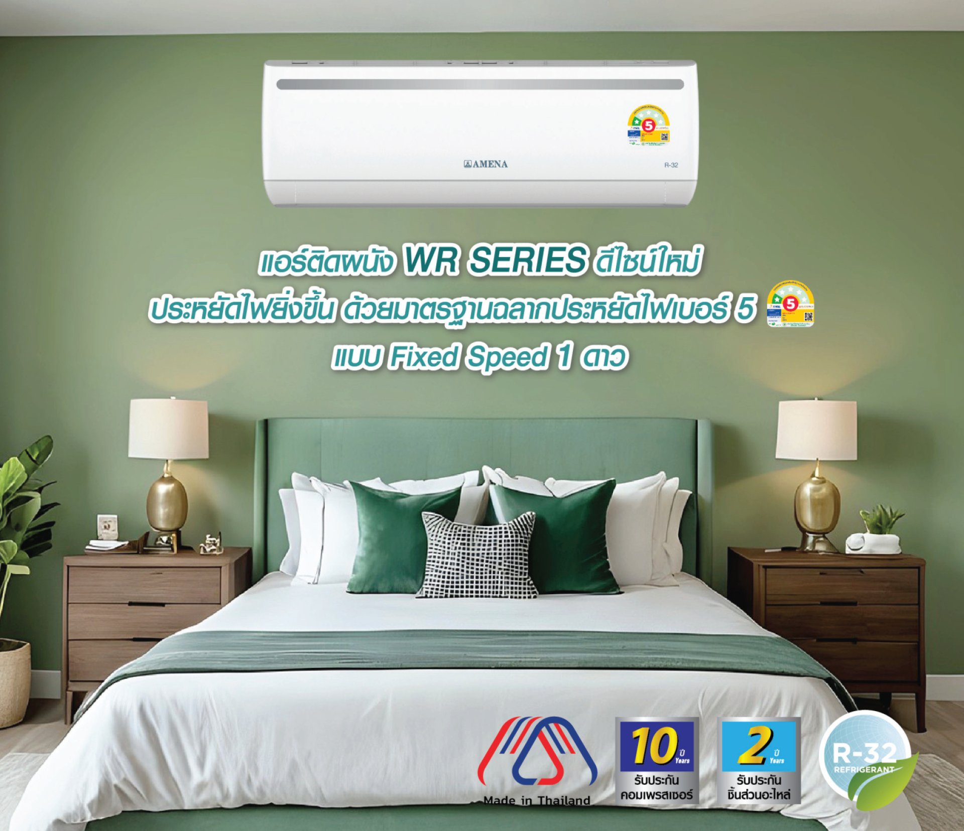 AMENA WR Series Fix Speed แอร์อามีน่ารุ่นฟิกซ์สปีดที่ได้ฉลากเบอร์ 5 แบบติดดาว ไม่อินเวอร์เตอร์ ทนทาน