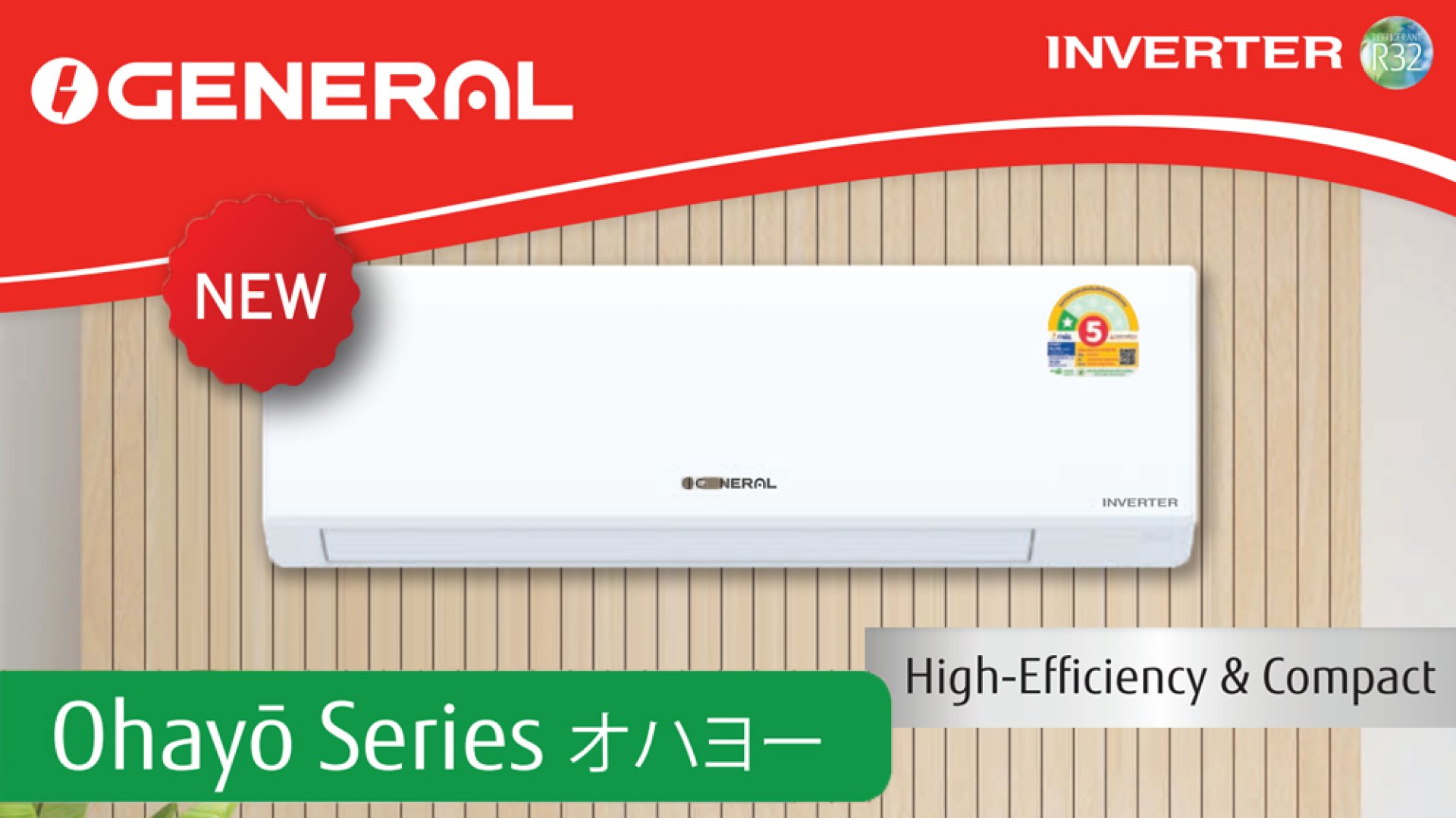 GENERAL Ohayo Series Inverter แอร์เจเนรัล รุ่นอินเวอร์เตอร์ [[โอไฮโย ซีรีย์]] แบรนด์ลูกจากฟูจิตสึ คุณภาพมาตรฐานเดียวกับแอร์ FUJITSU แต่ราคาประหยัดกว่า